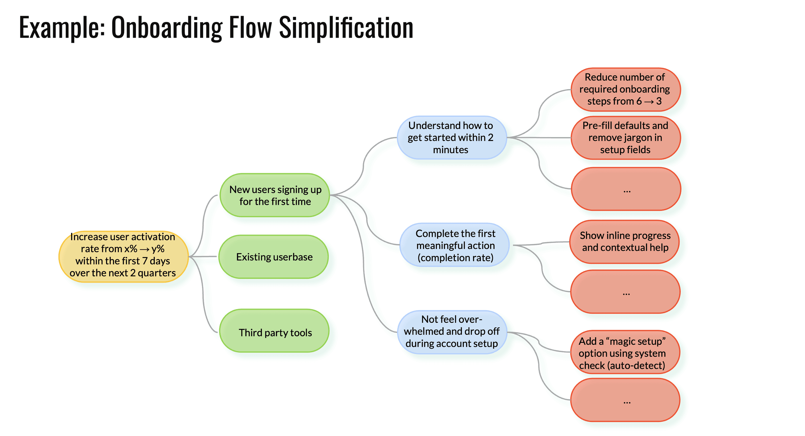 Here is an anonymised example from a team that I worked with that wanted to find solutions that would increase activation rate by simplifying the onboarding experience: