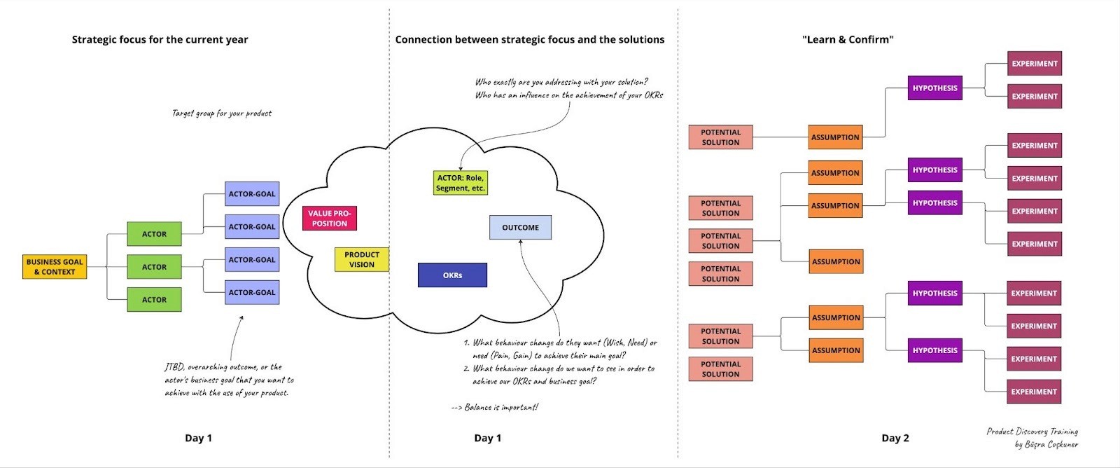 This is only possible because I don’t stick to the original framework but adapt their thinking to each company’s, even each team’s setup, internal practices, and level of product discovery knowledge.
