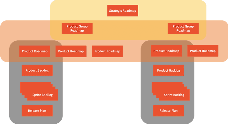 Yes, there are different levels of roadmaps. The most abstract one is on the company level that demonstrates the strategy. Depending on if and how many product group layers you have, you'll have product group roadmaps. For each product in the product group, you'll have the product roadmap itself. And finally you have the product backlog, sprint backlog and release plan on the delivery side of roadmapping - yes, they're kind of roadmaps, too.